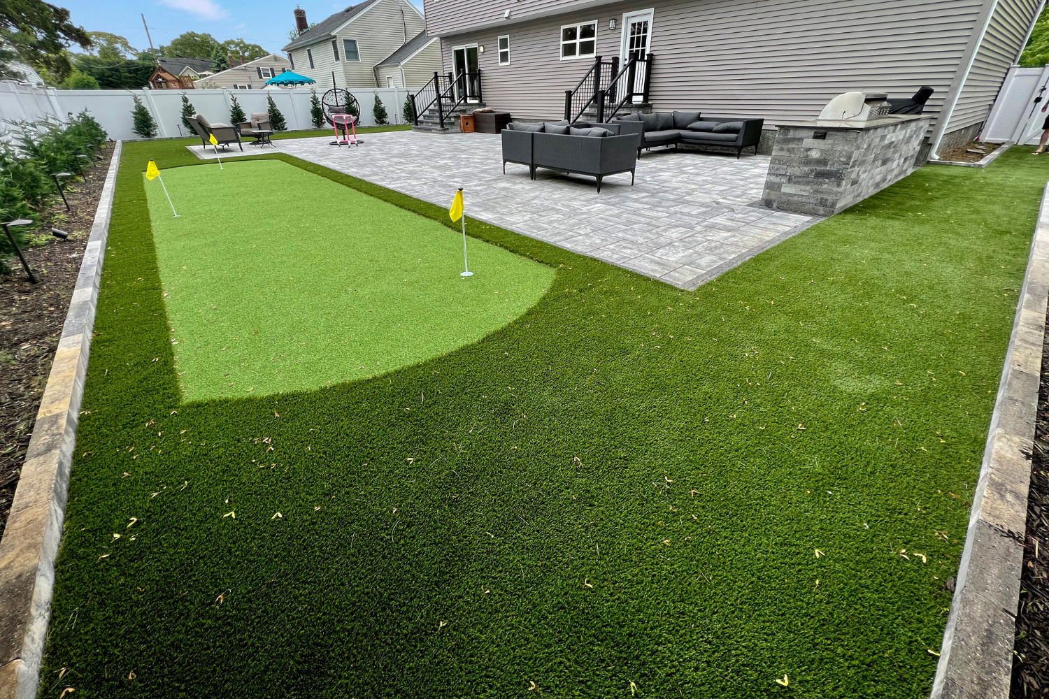Perfect your putting or enjoy a game of croquet at home with maintenance-free synthetic turf from Flawless Masonry.